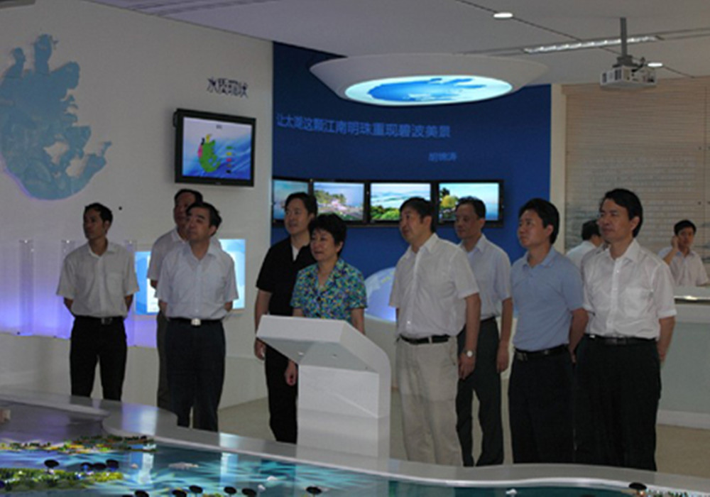 楊灣藻水分離站是無錫市環(huán)太湖八大藻水分離站之一,日處理藻漿能力達(dá)2000噸,藍(lán)藻治理科技館也在此建成??萍拣^通過展板、多媒體、聲光電等現(xiàn)代表現(xiàn)手段和展示方式,分太湖概況、科學(xué)治太、藻水分離、政策舉措、科普天地、生物農(nóng)業(yè)、關(guān)愛太湖等七大板塊,集中宣傳展示太湖治理工作。黃莉新仔細(xì)察看了每一個板塊,并認(rèn)真觀看了“感知太湖智慧水利”一期工程項目演示,聽取了工程實施情況匯報。對于無錫市將智能傳感、地理信息系統(tǒng)等先進(jìn)科技用于太湖藍(lán)藻監(jiān)測預(yù)警、打撈作業(yè)和資源化利用管理的做法,黃莉新予以了高度贊賞。她希望無錫市相關(guān)部門進(jìn)一步深入研究,爭取在太湖防洪保安、資源管理和環(huán)境綜合整治等多種功能的結(jié)合上,實現(xiàn)智能化、現(xiàn)代化水利的更大突破。