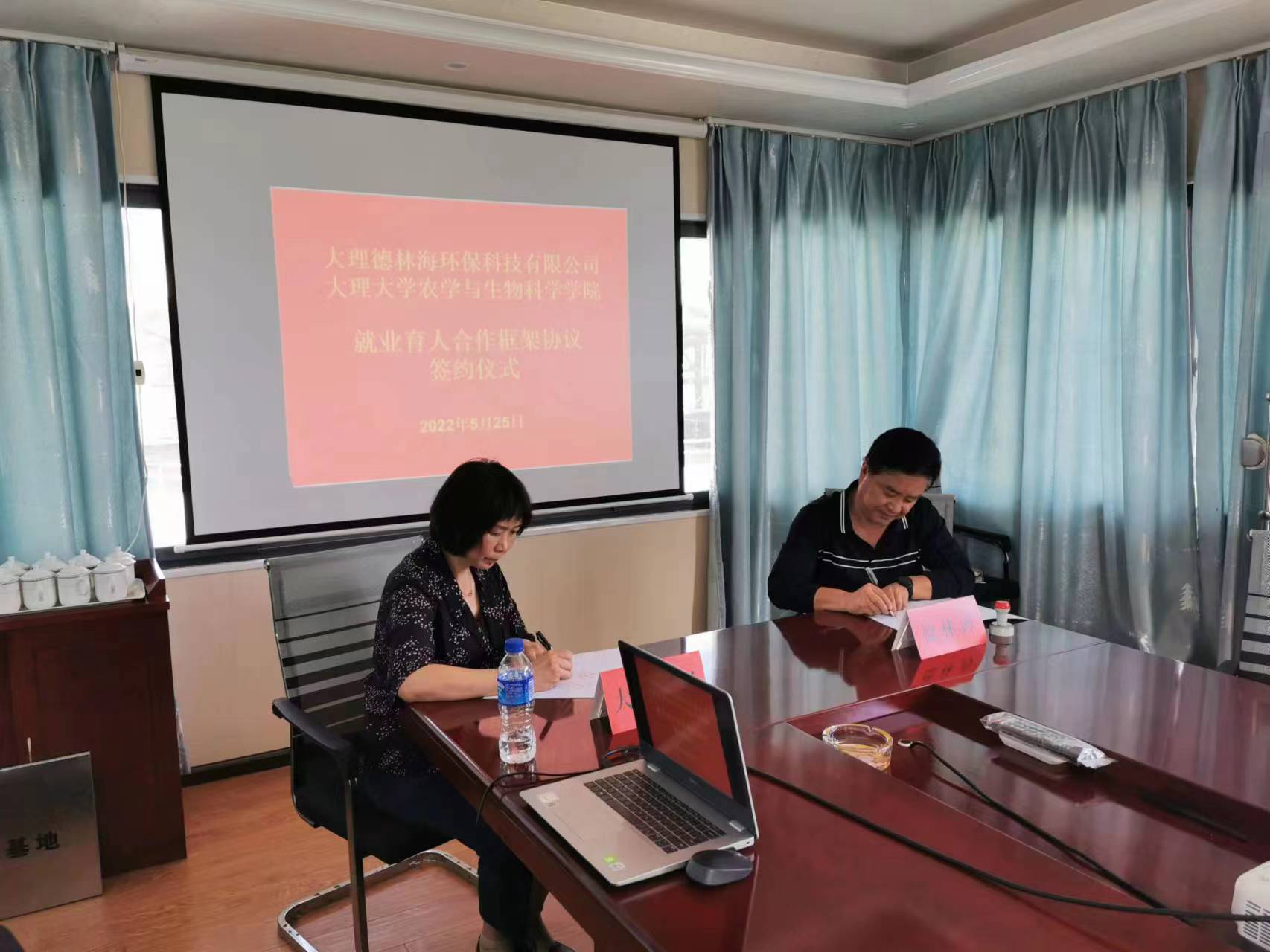 2022年5月25日下午,大理大學與大理德林海的就業(yè)育人合作框架協(xié)議簽約授牌儀式在洱海挖色藻水分離站舉行。大理大學副校長段利華、大理大學農學與生物科學學院黨委書記馬志敏、大理德林海環(huán)??萍加邢薰究偨浝眈R利恒及總經理助理陳雄峰等領導出席簽約授牌儀式。此外,本次簽約授牌儀式還邀請到大理洱海保護投資建設有限責任公司副總經理廖婧璇參加。